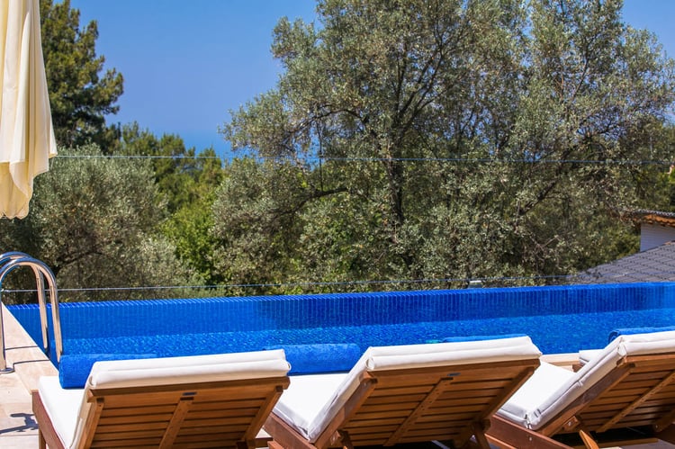 Villa Sunset One, Kalkan İslamlar bölgesinde konumlanmakta olan, yeşilliklerle kaplı doğa manzarasına hakim kiralık villalarımız arasında yer almaktadır. Lüks ve modern bir şekilde dizayn edilen villamızda 2 adet yatak odası bulunmakta olup, 4 kişiye konaklama imkanı sağlamaktadır. Yatak odalarından bir tanesinde, tüm yılın vermiş olduğu yorgunluğu giderebileceğiniz jakuzi yer almaktadır. Havuz ve havuz terası korunaklı hale getirilen yazlık villamız, muhafazakar aileler tarafından gönül rahatlığı ile tercih edilebilir. Hayallerinizin ötesinde keyifli bir villa tatili için Villa Sunset One’ı tercih edebilirsiniz.