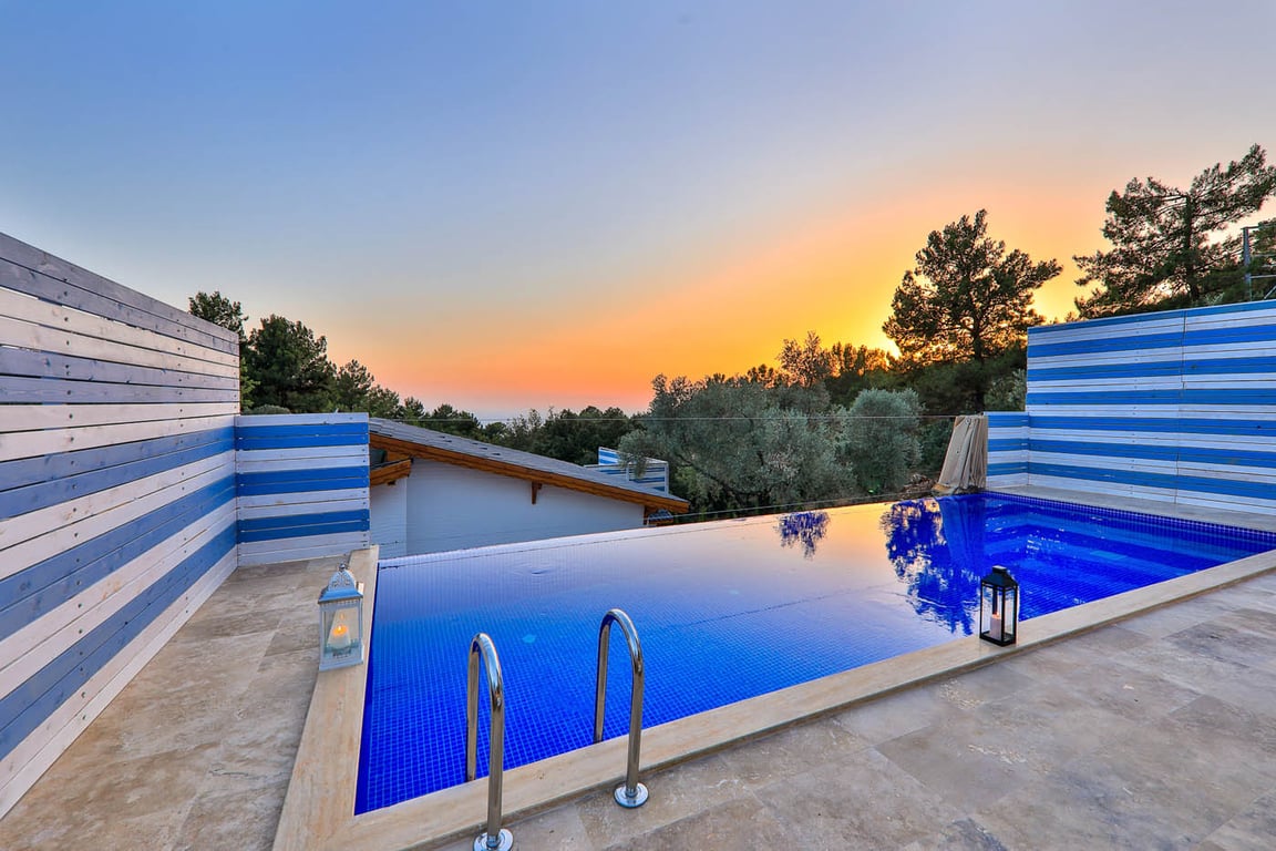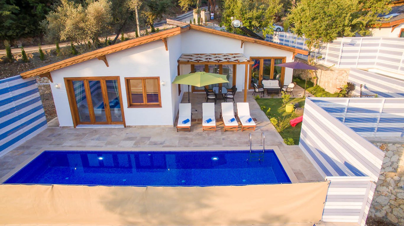 Villa Sunset Two, Kalkan İslamlar bölgesinde konumlanmakta olan, yeşilliklerle kaplı doğa manzarasına hakim kiralık villalarımız arasında yer almaktadır. Lüks ve modern bir şekilde dizayn edilen villamızda 2 adet yatak odası bulunmakta olup, 4 kişiye konaklama imkanı sağlamaktadır. Yatak odalarından bir tanesinde, tüm yılın vermiş olduğu yorgunluğu giderebileceğiniz jakuzi yer almaktadır. Havuz ve havuz terası korunaklı hale getirilen yazlık villamız, muhafazakar aileler tarafından gönül rahatlığı ile tercih edilebilir. Hayallerinizin ötesinde keyifli bir villa tatili için Villa Sunset Two’yu tercih edebilirsiniz.