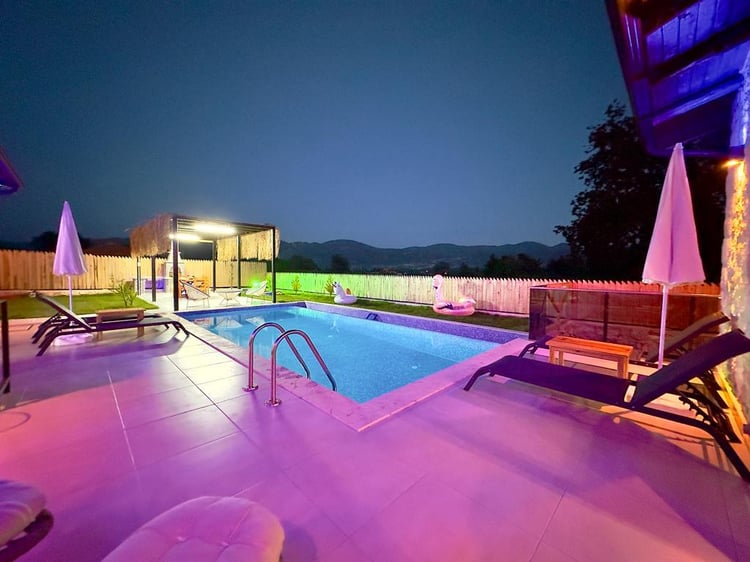 Villa Tomrul, Kaş Uğrar bölgesinde konumlanmakta olan, yeşilliklerle kaplı doğa manzarasına hâkim kiralık villalarımız arasında yer almaktadır. Lüks ve modern bir şekilde dizayn edilen villamızda 2 adet yatak odası bulunmakta olup, 4 kişiye konaklama imkânı sağlamaktadır. Yatak odalarından bir tanesinin içerisinde tüm yılın vermiş olduğu yorgunluğu giderebileceğiniz jakuzi yer almaktadır. Havuz ve havuz terası korunaklı hale getirilen yazlık villamız, muhafazakâr aileler tarafından gönül rahatlığıyla tercih edilebilir. Hayallerinizin de ötesinde keyif dolu bir yazlık villada tatil için Villa Tomrul'u tercih edebilirsiniz.