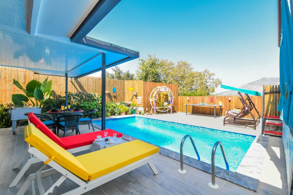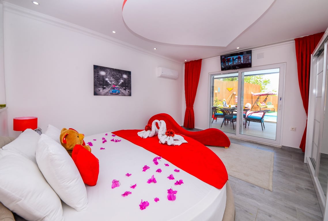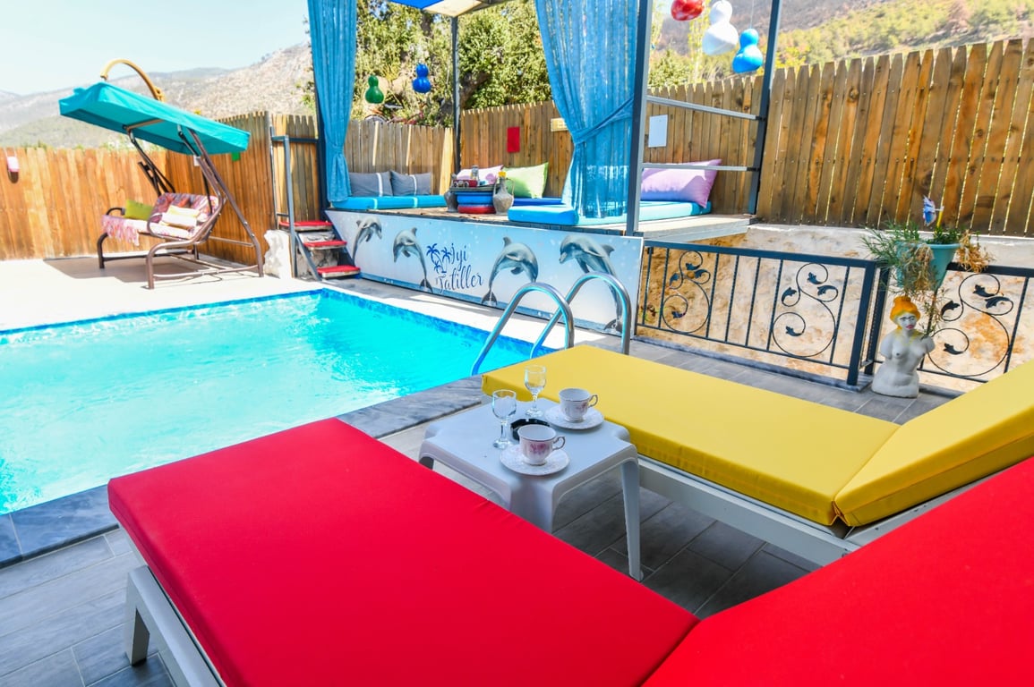 Villa Tuğba, Kalkan Üzümlü bölgesinde konumlanmakta olan, yeşilliklerle kaplı doğa manzarasına hakim kiralık villalarımız arasında yer almaktadır. Lüks ve modern bir şekilde dizayn edilen villamızda 1 adet yatak odası bulunmakta olup, 2 kişiye konaklama imkanı sağlamaktadır. Yatak odasının içerisinde tüm yılın vermiş olduğu yorgunluğu giderebileceğiniz jakuzi yer almaktadır. Havuz ve havuz terası korunaklı hale getirilen yazlık villamızı muhafazakar aileler ve balayı çiftleri gönül rahatlığı ile tercih edebilirler. Hayallerinizin de ötesinde keyif dolu bir yazlık villada tatil için Villa Tuğba’yı tercih edebilirsiniz.