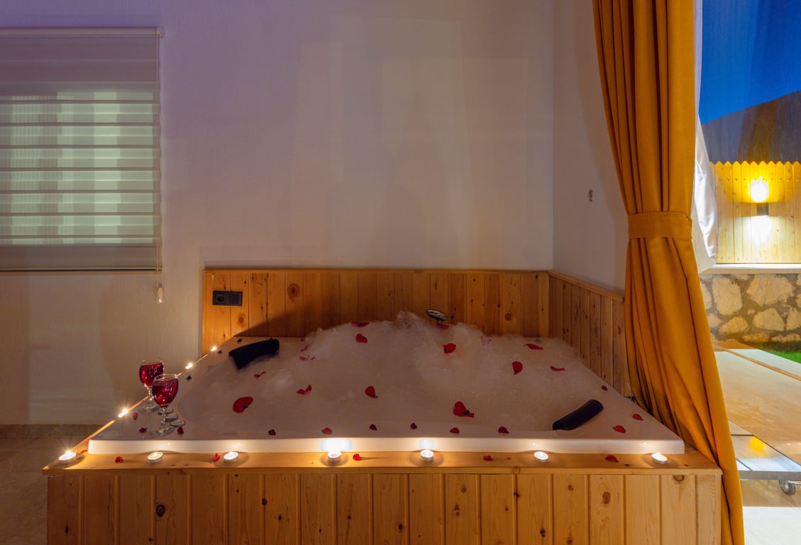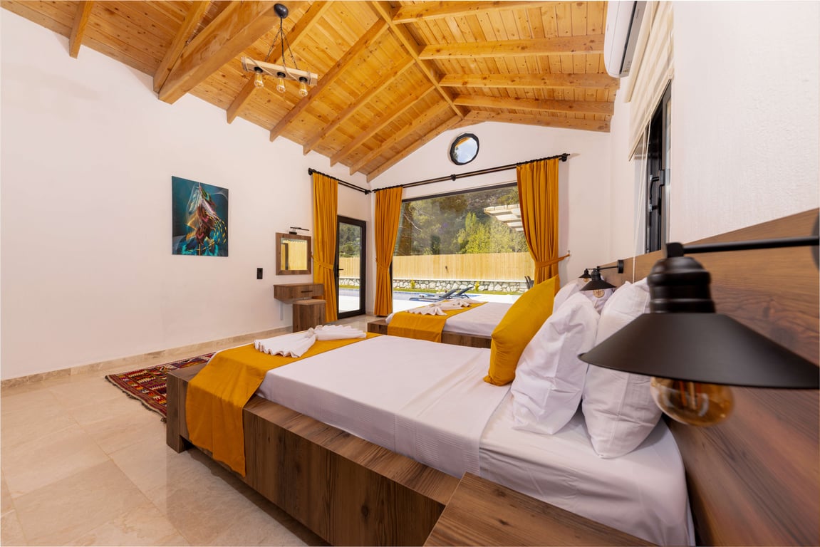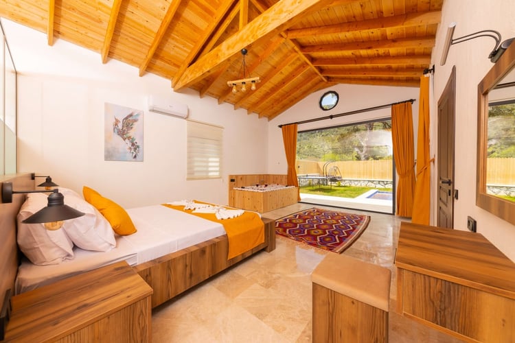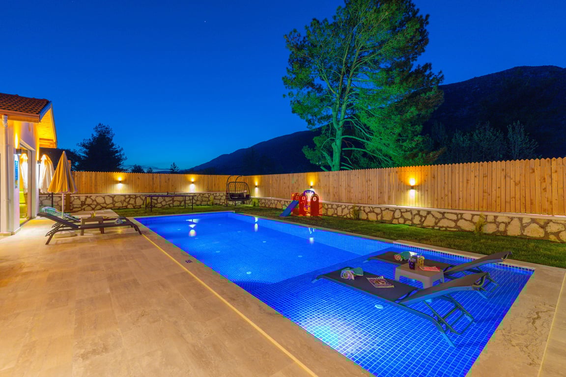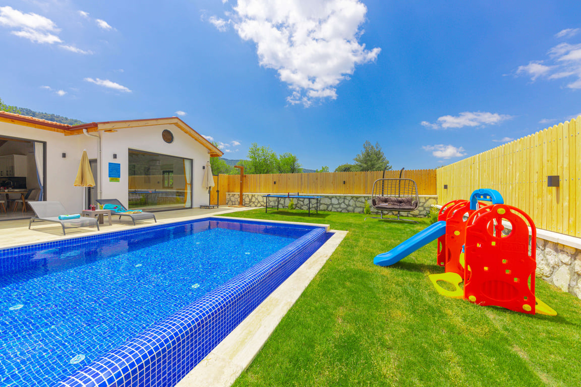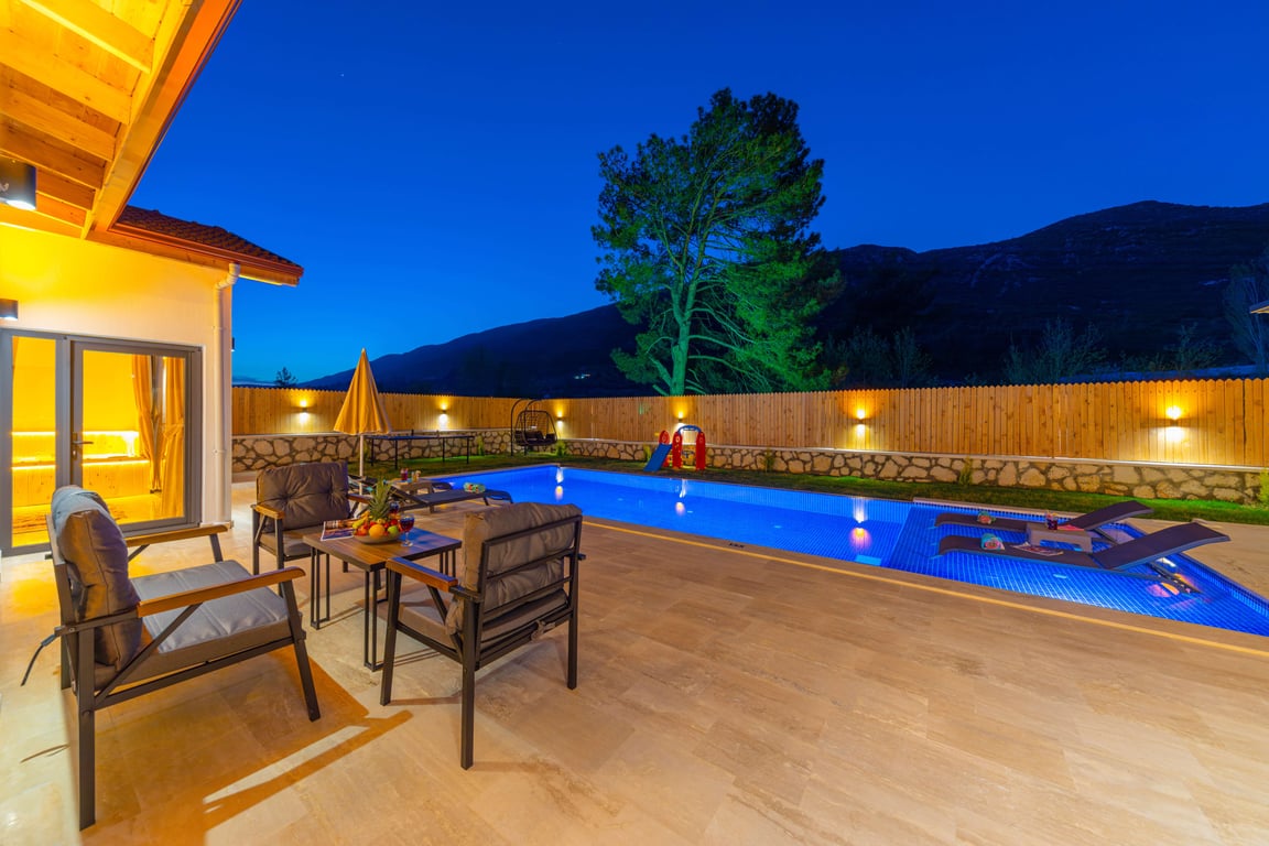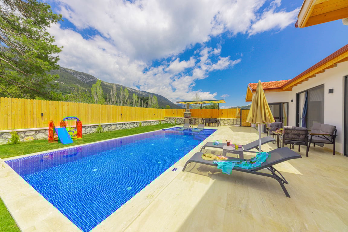 Villa Valley, Kalkan Sarıbelen bölgesinde konumlanmakta olup, yeşilliklerle kaplı doğa manzarasına hakim kiralık villalarımız arasında yer almaktadır. Lüks ve modern bir şekilde tasarlanan villamızda 2 adet yatak odası bulunmakta olup, 5 kişiye kadar konaklama imkânı sunmaktadır. Yatak odalarından birinde, tüm yılın yorgunluğunu atabileceğiniz jakuzi yer almaktadır. Havuzu ve havuz terası korunaklı hale getirilen villamız, muhafazakâr aileler tarafından gönül rahatlığıyla tercih edilebilir. Hayallerinizin ötesinde keyif dolu bir tatil için Villa Valley’i tercih edebilirsiniz.