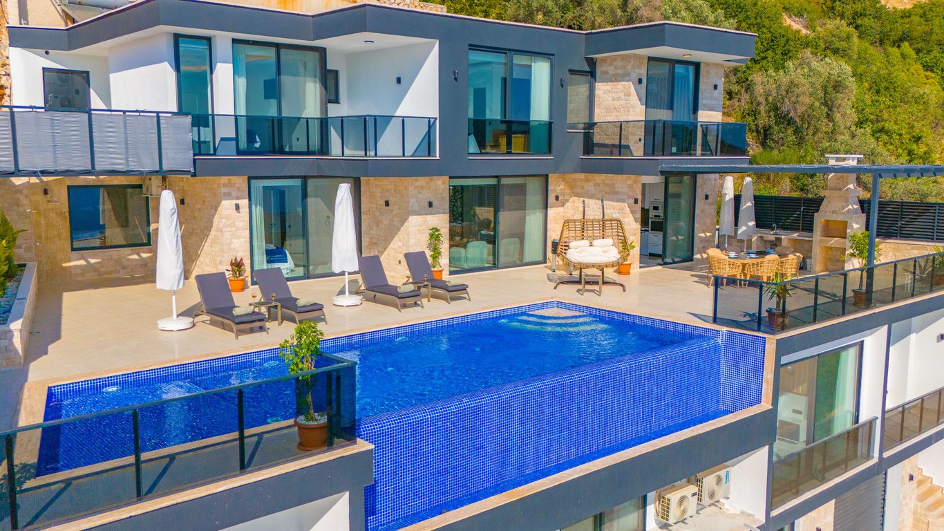 Villa Yeşim, Kalkan Kördere bölgesinde yer almakta olup, eşsiz deniz ve doğa manzarasına sahip lüks kiralık villalarımız arasında bulunmaktadır. Modern mimarisi ve şık dekorasyonuyla öne çıkan villamızda 5 yatak odası bulunmakta olup, 10 kişilik konaklama kapasitesi ile kalabalık aileler ve arkadaş grupları için ideal bir seçenektir.