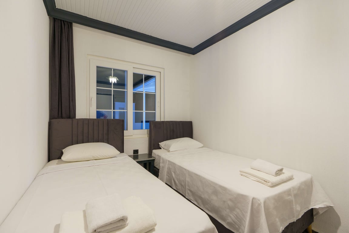 2-Two single beds and shared bathroom/WC.