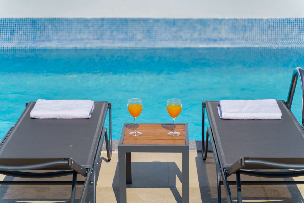 Secluded Pool: The pool and pool terrace provide approximately 95% privacy; however, due to corner and edge areas, there may be a 5% visibility margin.