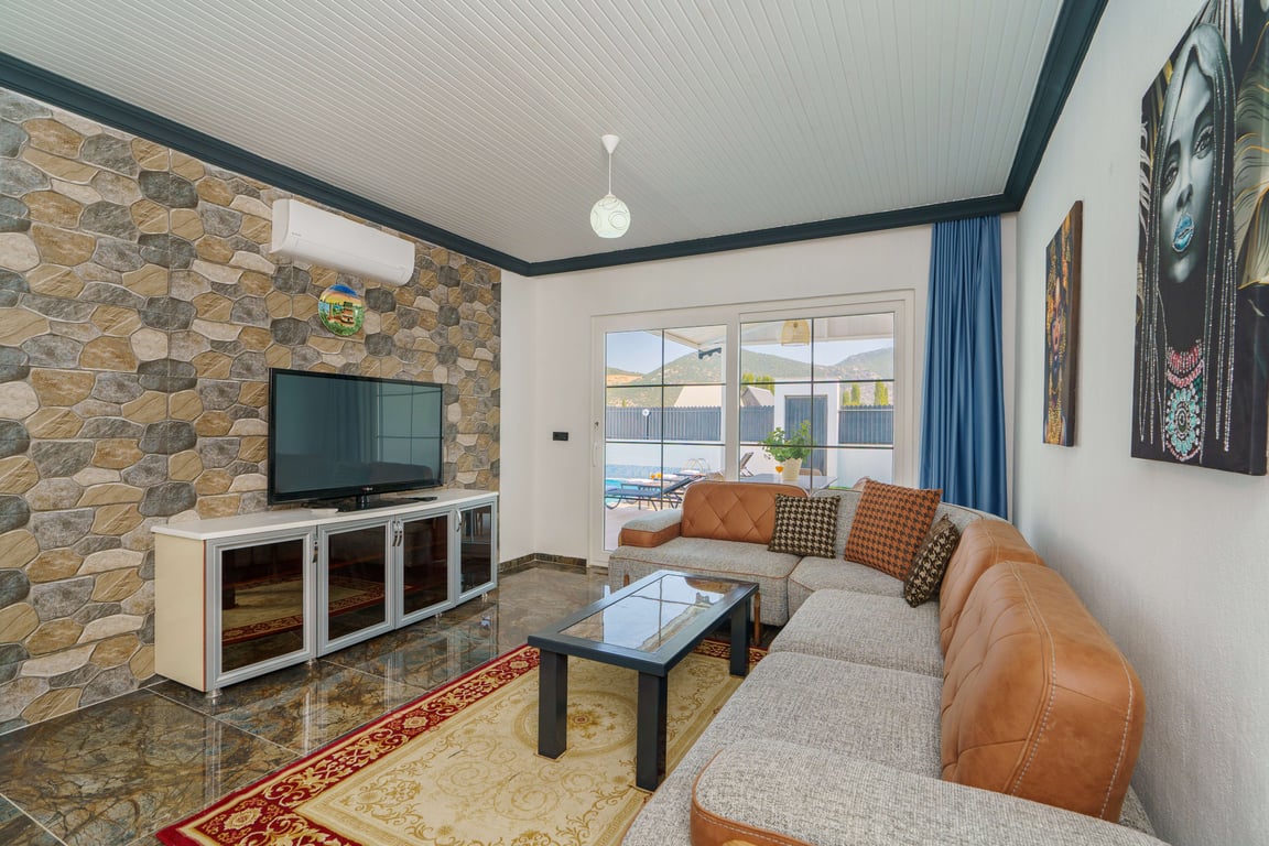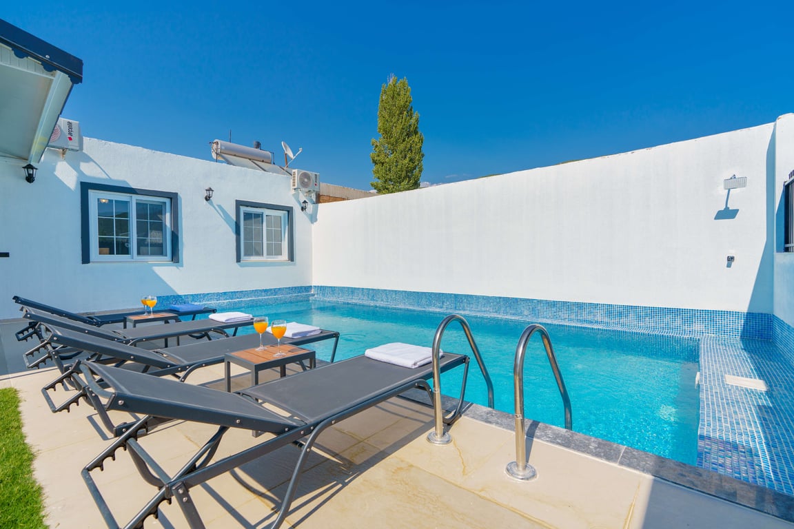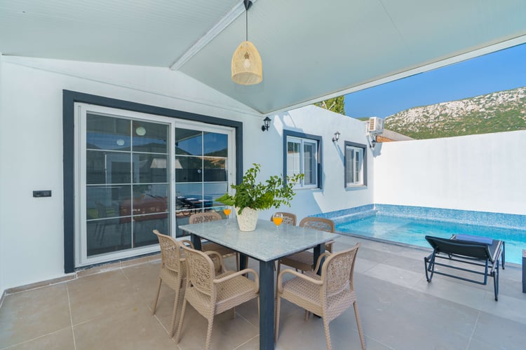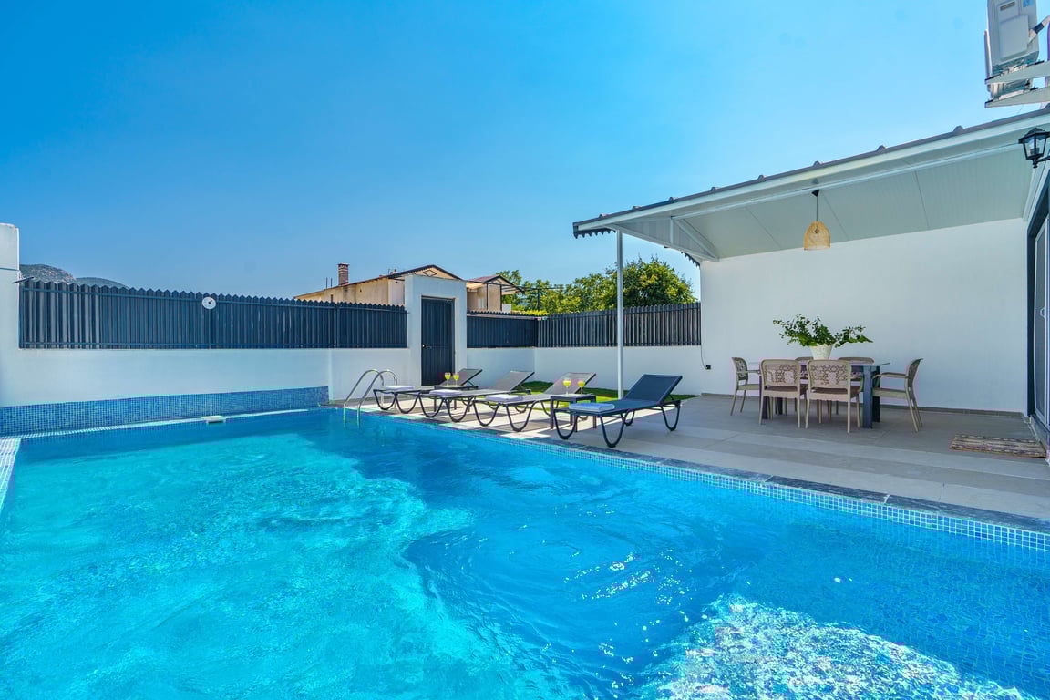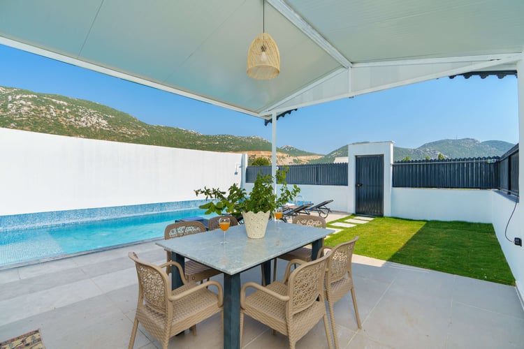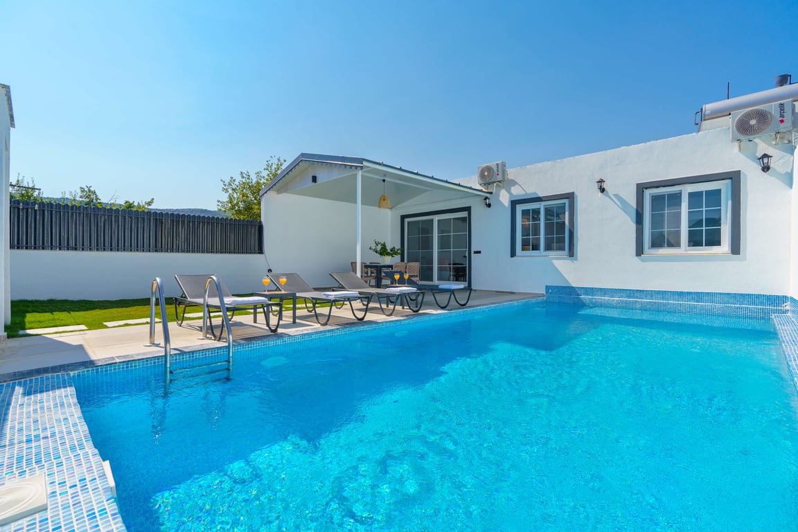 Villa Zehra is located in the Bezirgan area of Kalkan and is among our rental villas offering a tranquil holiday surrounded by lush nature views. Designed in a luxurious and modern style, our villa features 2 bedrooms and provides accommodation for up to 4 guests. With its secluded pool and pool terrace, our summer villa can be comfortably preferred by conservative families. For a delightful holiday experience beyond your dreams, you may choose Villa Zehra.