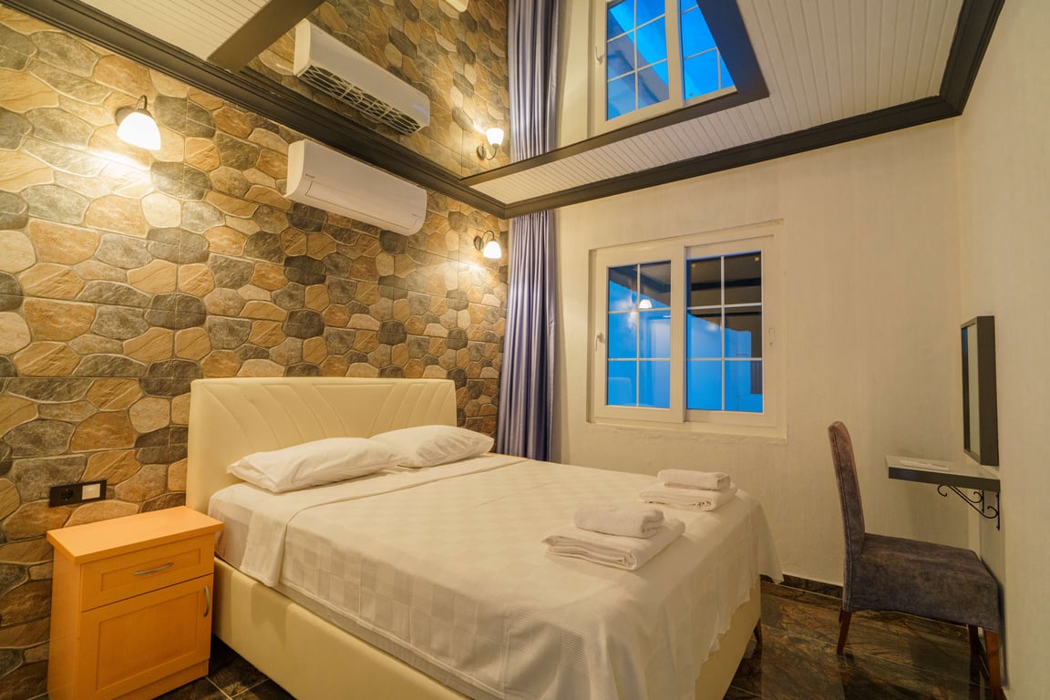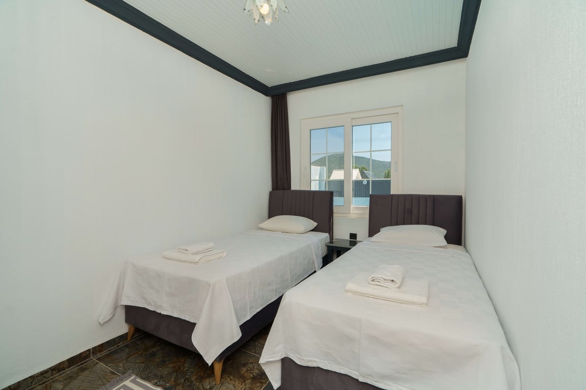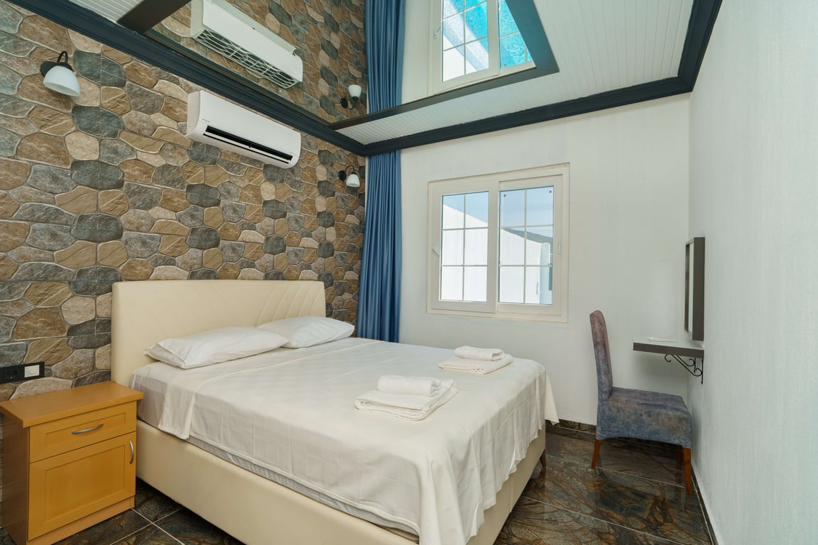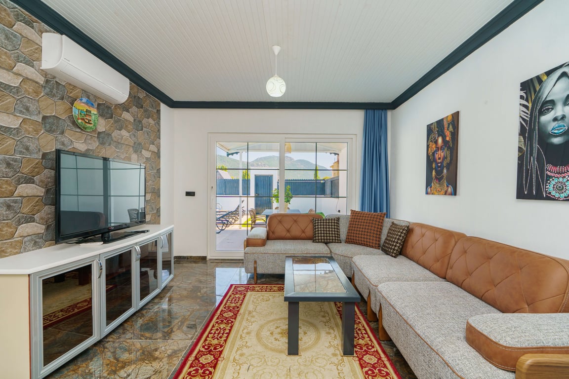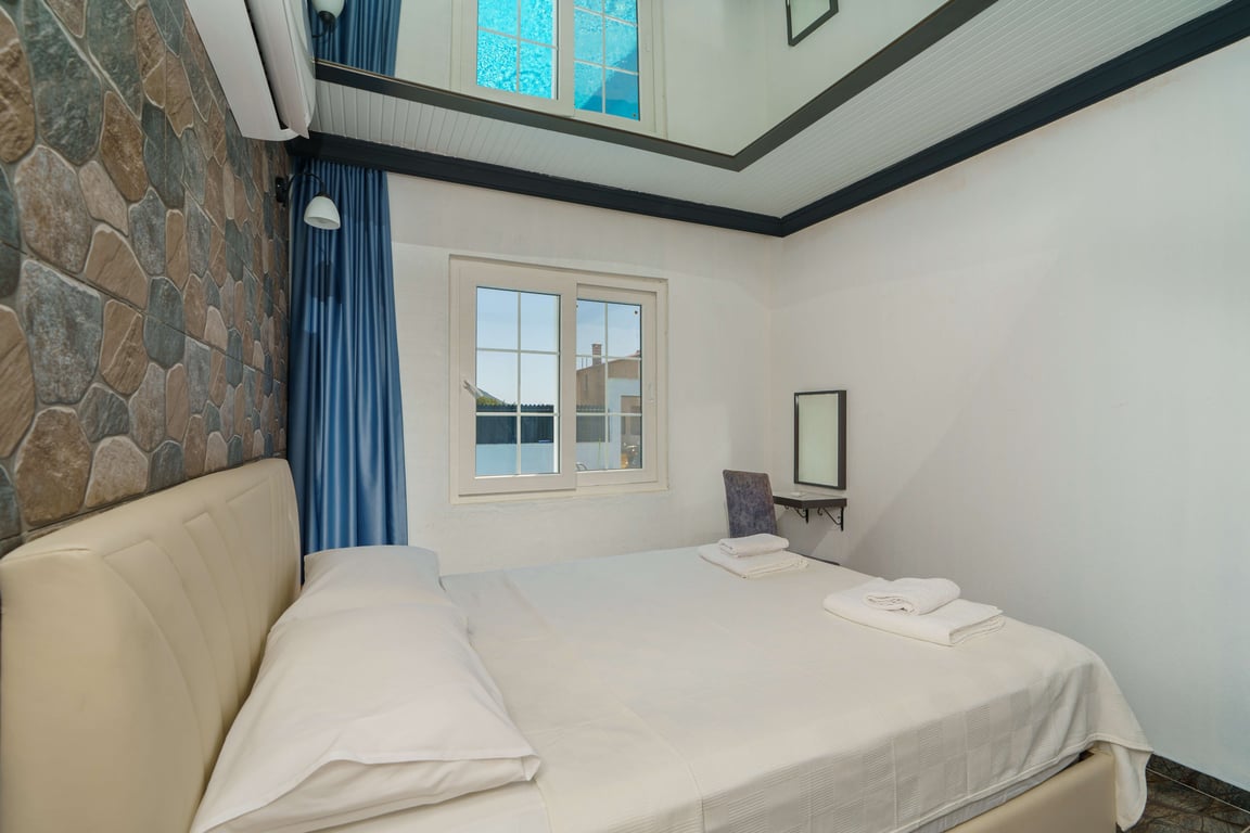 Villa Zehra is located in the Bezirgan area of Kalkan and is among our rental villas offering a tranquil holiday surrounded by lush nature views. Designed in a luxurious and modern style, our villa features 2 bedrooms and provides accommodation for up to 4 guests. With its secluded pool and pool terrace, our summer villa can be comfortably preferred by conservative families. For a delightful holiday experience beyond your dreams, you may choose Villa Zehra.
