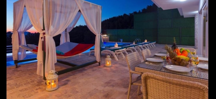 Villa Alvin, Kalkan İslamlar bölgesinde konumlanmakta olan panoramik deniz ve yeşilliklerle kaplı doğa manzarasına hakim kiralık villalarımız arasında yer almaktadır. Lüks ve modern bir şekilde dizayn edilen villamızda 3 adet yatak odası bulunmakta olup, 6 kişiye konaklama imkanı sağlamaktadır. Yatak odalarından iki tanesinin içerisinde tüm yılın vermiş olduğu yorgunluğu giderebileceğiniz jakuzi yer almaktadır. Havuz ve havuz terası korunaklı hale getirilen yazlık villamızı muhafazakar aileler gönül rahatlığı ile tercih edebilirler. Her bir detayın en ince ayrıntısına kadar düşünüldüğü yazlık villamızı geniş aileler ve arkadaş grupları rahatlıkla tercih edebilirler. Hayallerinizin de ötesinde keyif dolu bir yazlık villada tatil için Villa Alvin’ i tercih edebilirsiniz.