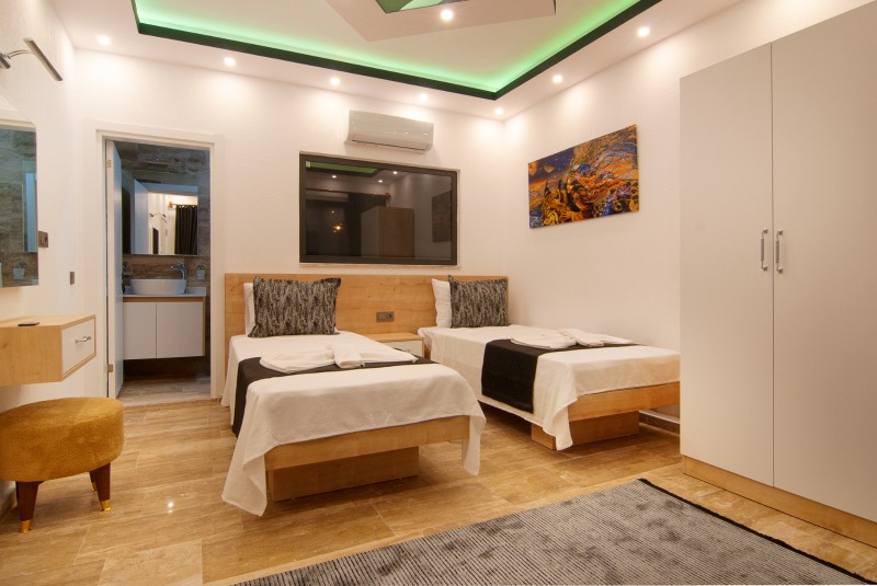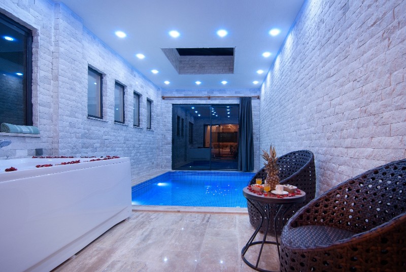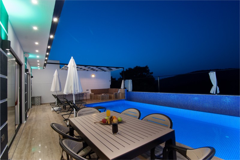 Villa Anemon 4, Kalkan Akbel bölgesinde konumlanmakta olan yeşilliklerle kaplı doğa manzarasına hakim kiralık villalarımız arasında yer almaktadır. Konforlu bir şekilde dizayn edilen villamızda 2 adet yatak odası bulunmakta olup, 4 kişiye konaklama imkanı sağlamaktadır. Yatak odalarından bir tanesinin içerisinde tüm yılın vermiş olduğu yorgunluğu giderebileceğiniz jakuzi yer almaktadır. Aynı zamanda kış aylarında tatil planı yapmak isteyen misafirlerimiz için kapalı ısıtma havuzu yer almaktadır. Havuz ve havuz terası korunaklı hale getirilen yazlık villamızı muhafazakar aileler gönül rahatlığı ile tercih edebilirler. Villamız balayı çiftleri ve çekirdek aileler için uygundur. Hayallerinizin de ötesinde keyif dolu bir yazlık villada tatil için Villa Anemon 4’ ü tercih edebilirsiniz.