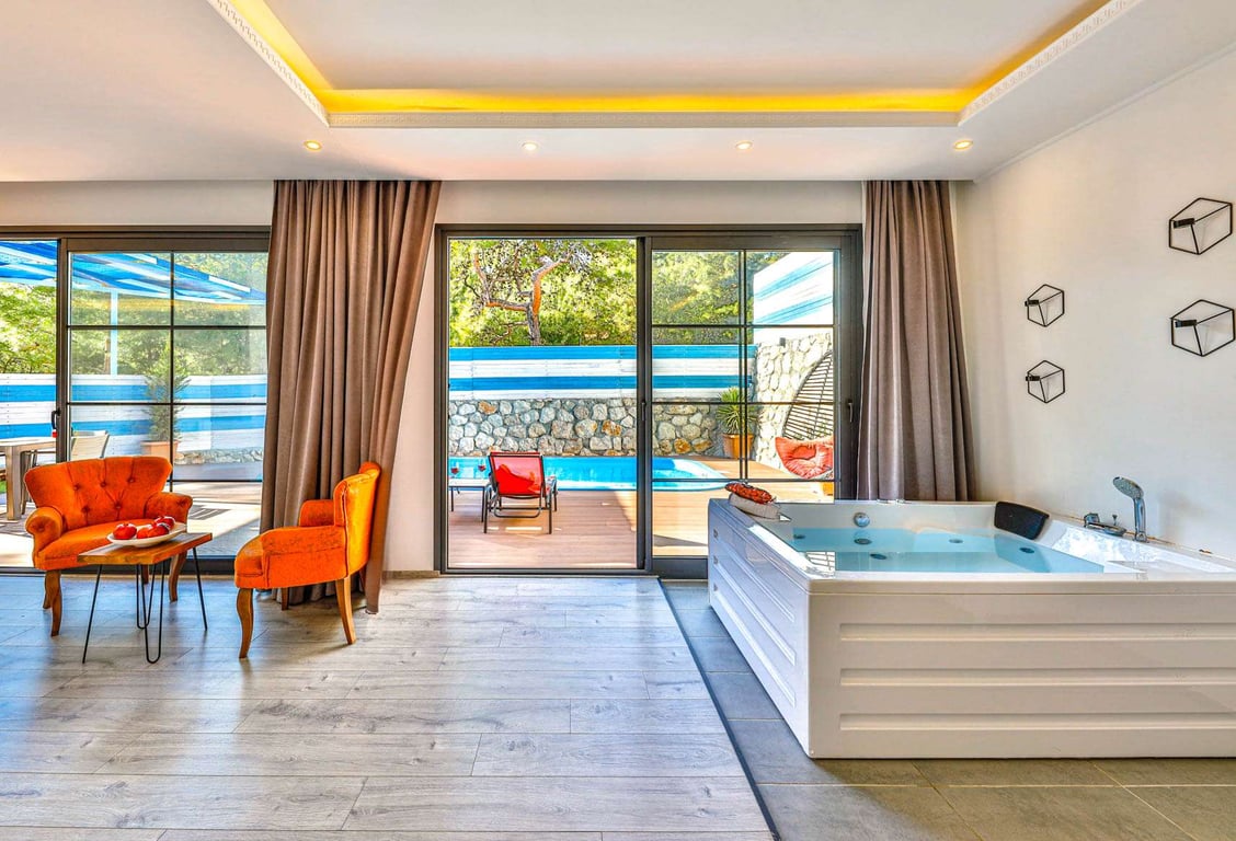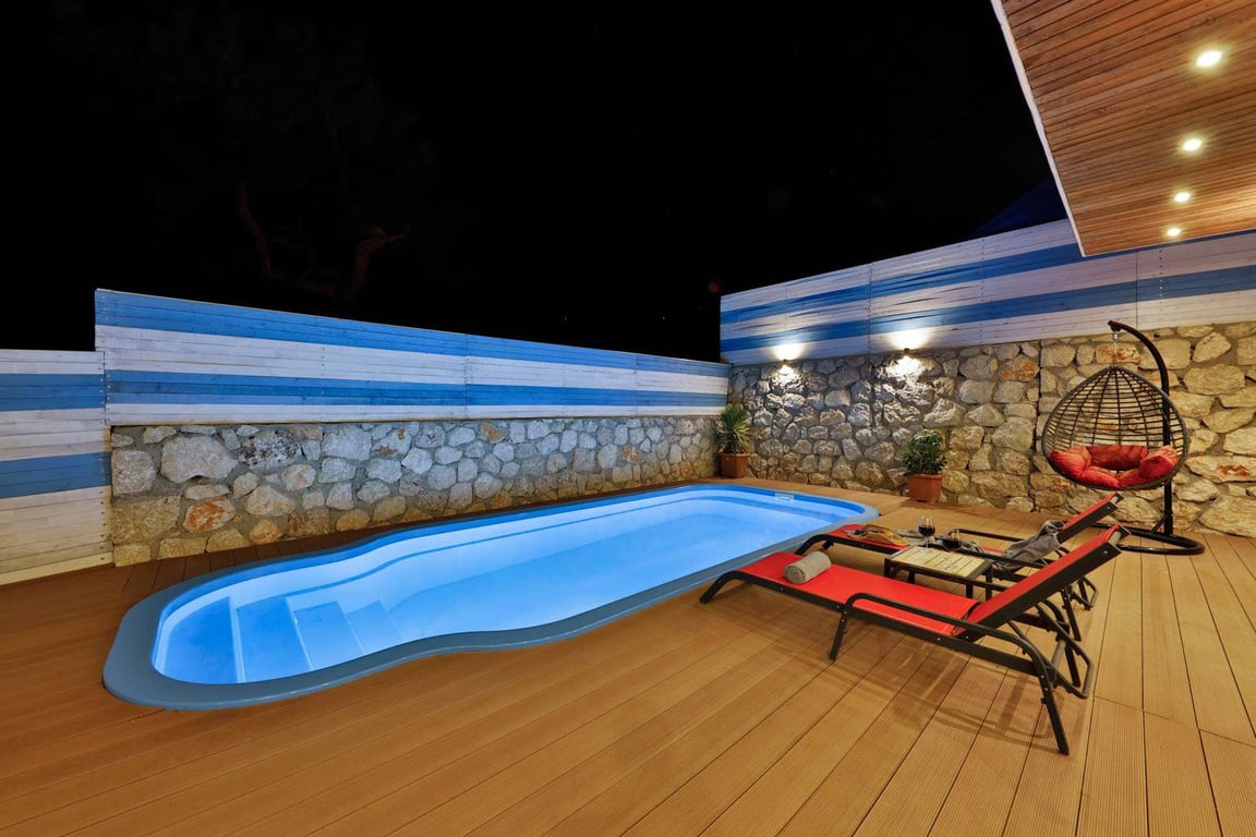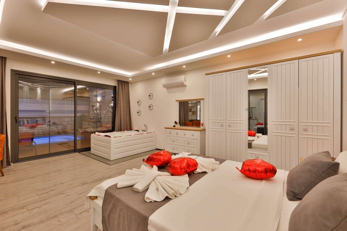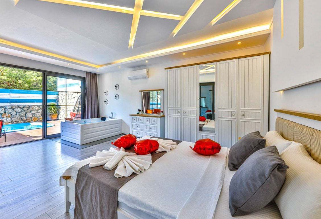 Villa Cazibe, Kalkan İslamlar bölgesinde konumlanmakta olan muhteşem yeşilliklerle kaplı doğa manzarasına hakim kiralık villalarımız arasında yer almaktadır. Konforlu ve modern bir şekilde dizayn edilen villamızda 1 adet yatak odası bulunmakta olup, 2 kişiye konaklama imkanı sağlamaktadır. Yatak odalarından bir tanesinin içerisinde tüm yılın vermiş olduğu yorgunluğu giderebileceğiniz jakuzi yer almaktadır. Havuz ve havuz terası korunaklı hale getirilen yazlık villamızı muhafazakar balayı çiftleri gönül rahatlığı ile tercih edebilirler. Hayallerinizin de ötesinde keyif dolu bir yazlık villada tatil için Villa Cazibe’ yi tercih edebilirsiniz.
