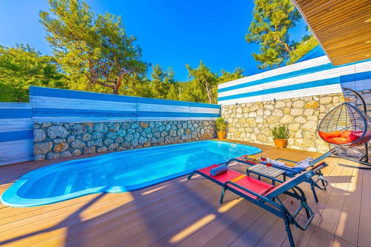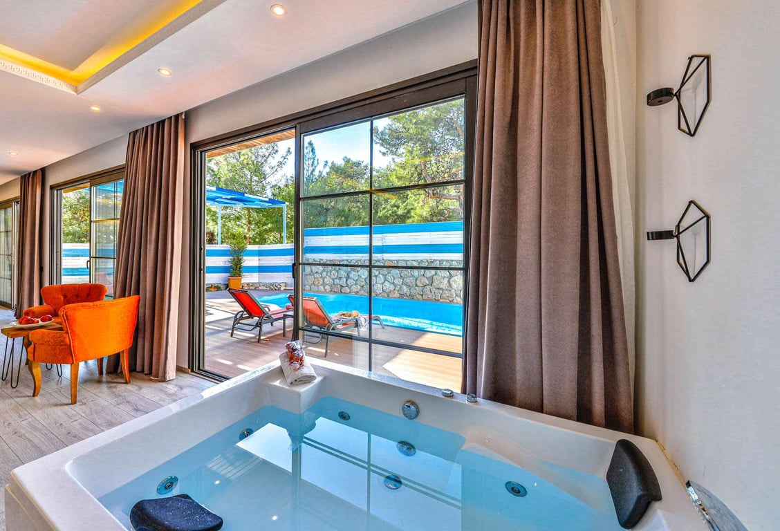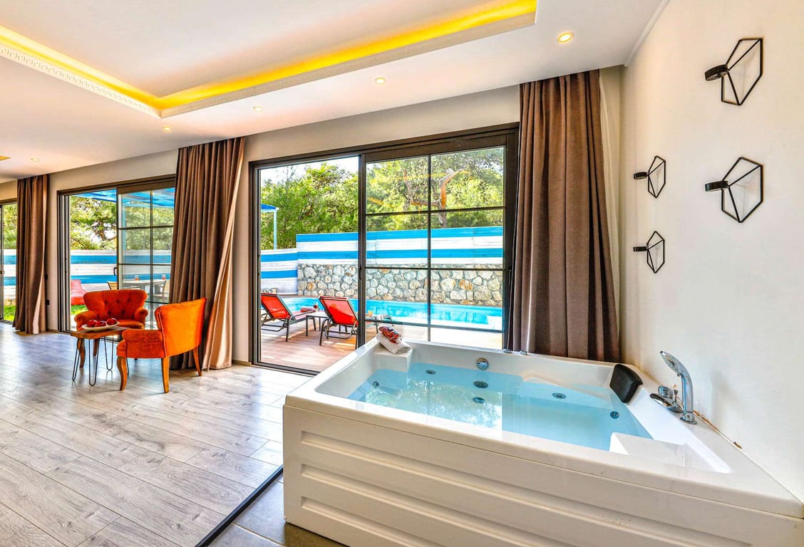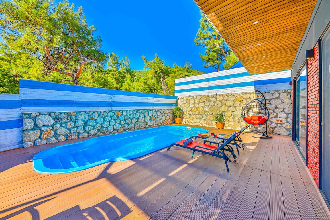 Villa Cazibe, Kalkan İslamlar bölgesinde konumlanmakta olan muhteşem yeşilliklerle kaplı doğa manzarasına hakim kiralık villalarımız arasında yer almaktadır. Konforlu ve modern bir şekilde dizayn edilen villamızda 1 adet yatak odası bulunmakta olup, 2 kişiye konaklama imkanı sağlamaktadır. Yatak odalarından bir tanesinin içerisinde tüm yılın vermiş olduğu yorgunluğu giderebileceğiniz jakuzi yer almaktadır. Havuz ve havuz terası korunaklı hale getirilen yazlık villamızı muhafazakar balayı çiftleri gönül rahatlığı ile tercih edebilirler. Hayallerinizin de ötesinde keyif dolu bir yazlık villada tatil için Villa Cazibe’ yi tercih edebilirsiniz.