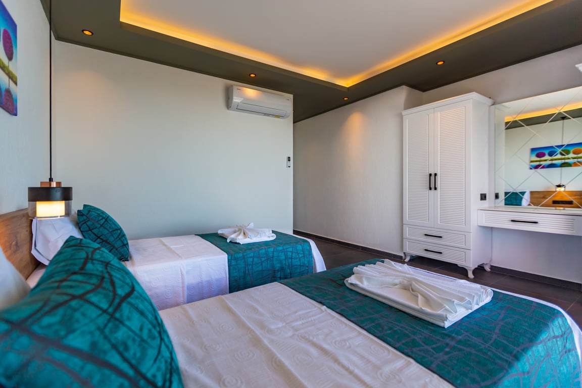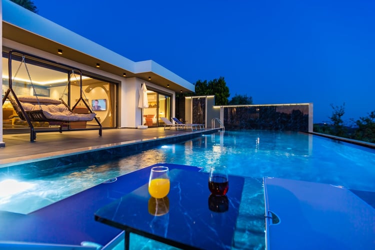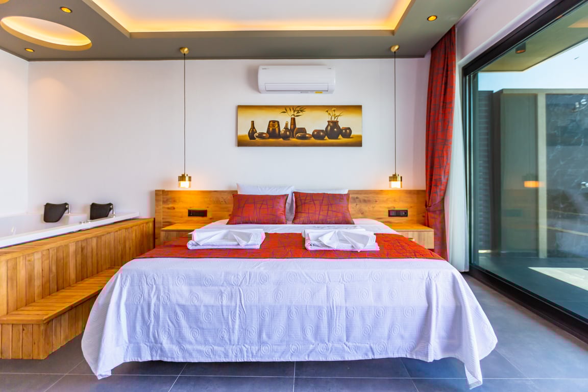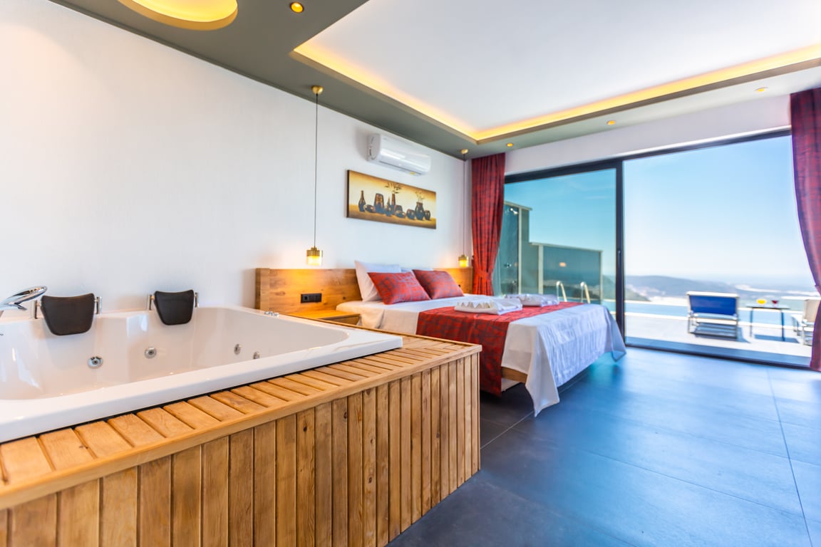 Villa Erdem, Kalkan Üzümlü bölgesinde konumlanmakta olan muhteşem yeşilliklerle kaplı doğa manzarasına hakim kiralık villalarımız arasında yer almaktadır. Lüks ve modern bir şekilde dizayn edilen villamızda 2 adet yatak odası bulunmakta olup, 4 kişiye konaklama imkanı sağlamaktadır. Yatak odalarından bir tanesinin içerisinde tüm yılın vermiş olduğu yorgunluğu giderebileceğiniz jakuzi yer almaktadır. Aynı zamanda villamızda keyifli anlar geçirebilmeniz için bilardo yer almaktadır. Havuz ve havuz terası korunaklı hale getirilen yazlık villamızı muhafazakar aileler gönül rahatlığı ile tercih edebilirler. Hayallerinizin de ötesinde keyif dolu bir yazlık villada tatil için Villa Erdem’ i tercih edebilirsiniz.
