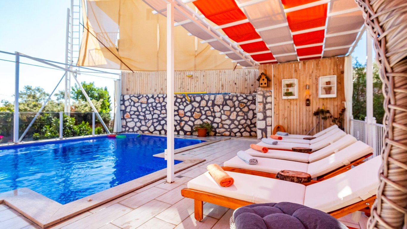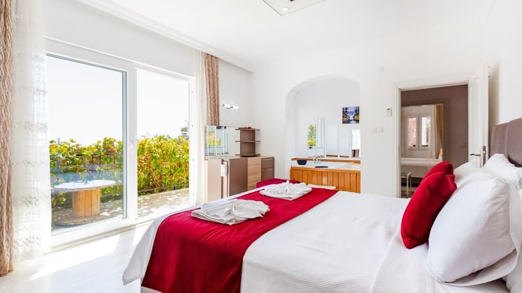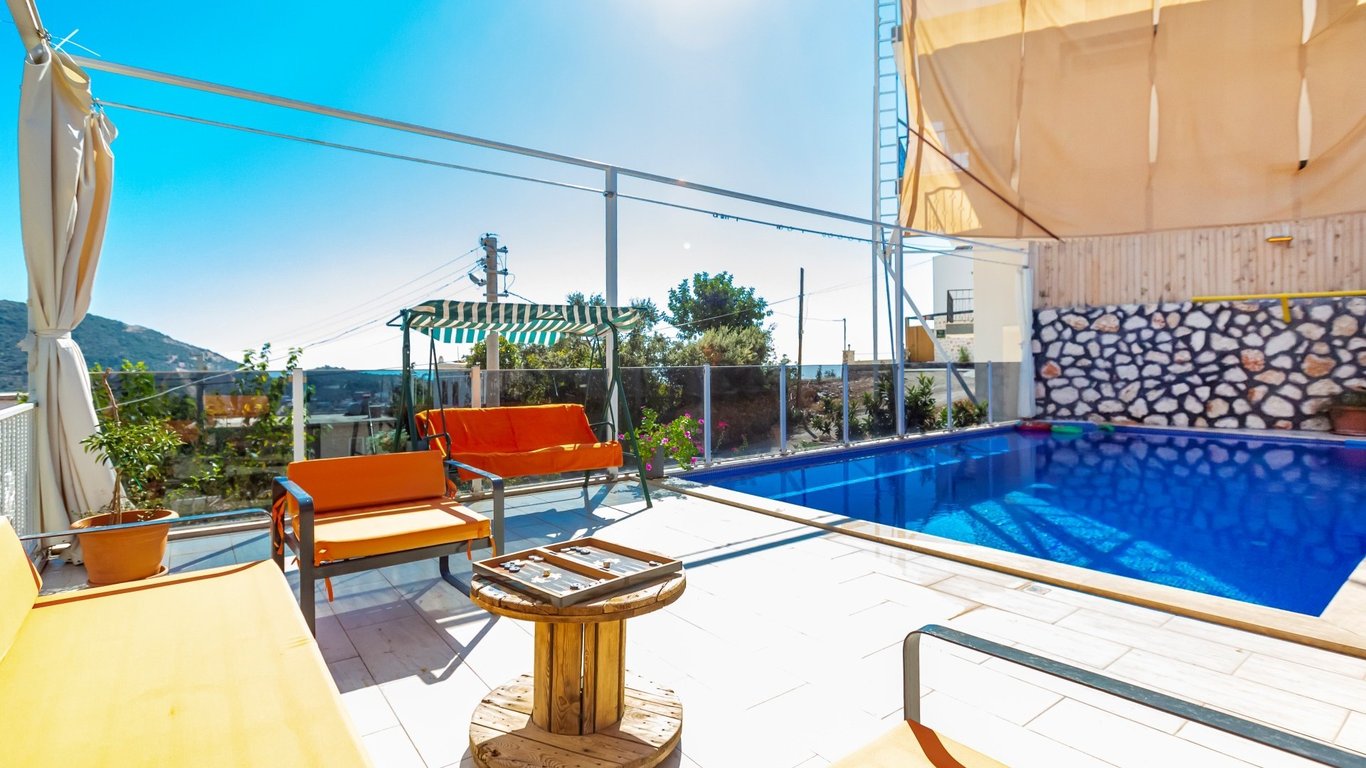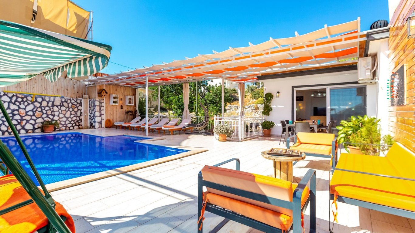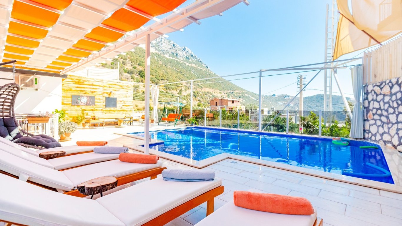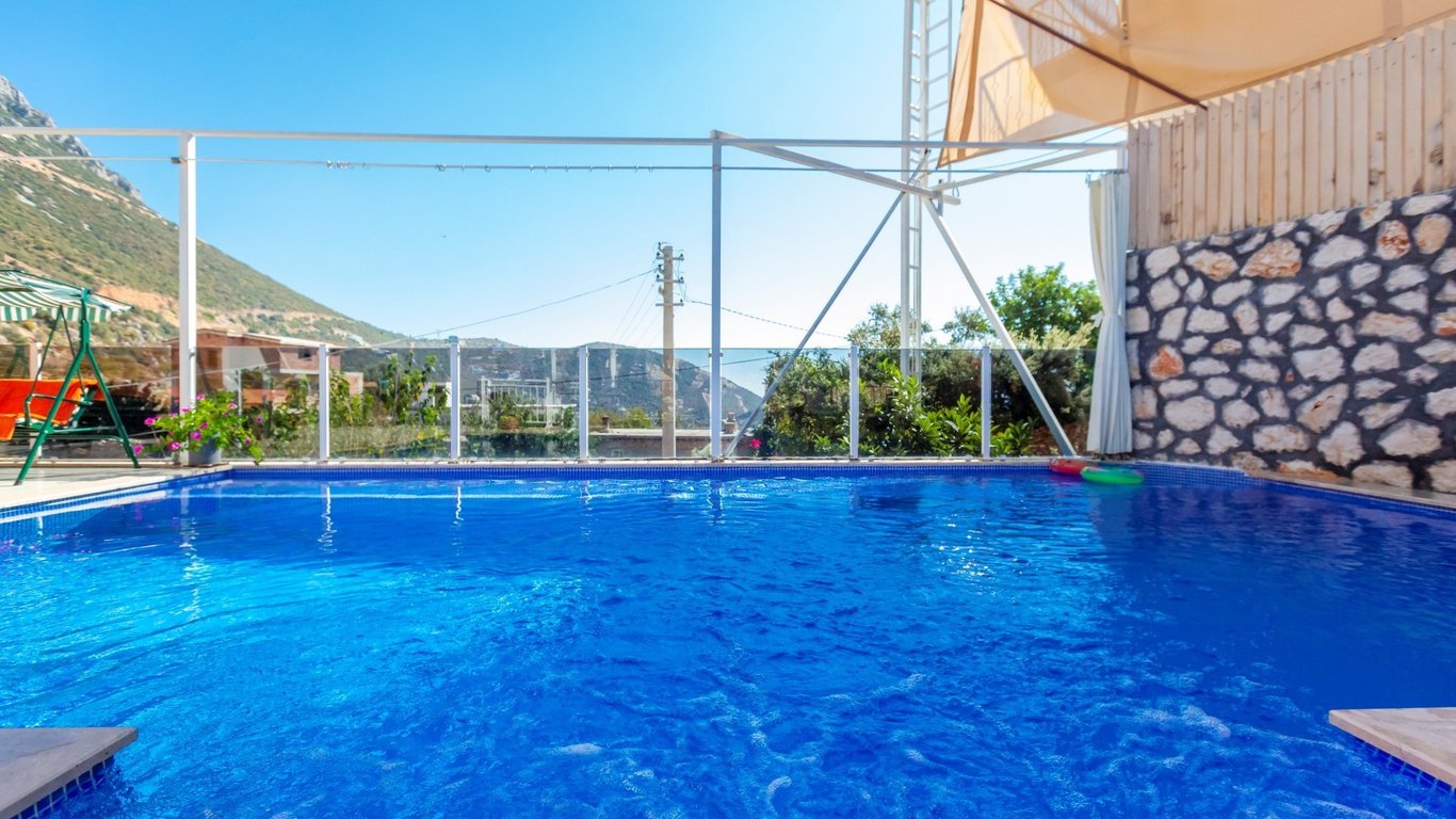 Villa Fesleğen, Kalkan Kördere bölgesinde konumlanmakta olan muhteşem yeşilliklerle kaplı doğa manzarasına hakim kiralık villalarımız arasında yer almaktadır. Konforlu bir şekilde dizayn edilen villamızda 3 adet yatak odası bulunmakta olup, 6 kişiye konaklama imkanı sağlamaktadır. Yatak odalarından bir tanesinin içerisinde tüm yılın vermiş olduğu yorgunluğu giderebileceğiniz jakuzi yer almaktadır. Havuz ve havuz terası korunaklı hale getirilen yazlık villamızı muhafazakar aileler gönül rahatlığı ile tercih edebilirler. Hayallerinizin de ötesinde keyif dolu bir yazlık villada tatil için Villa Fesleğen’ i tercih edebilirsiniz.