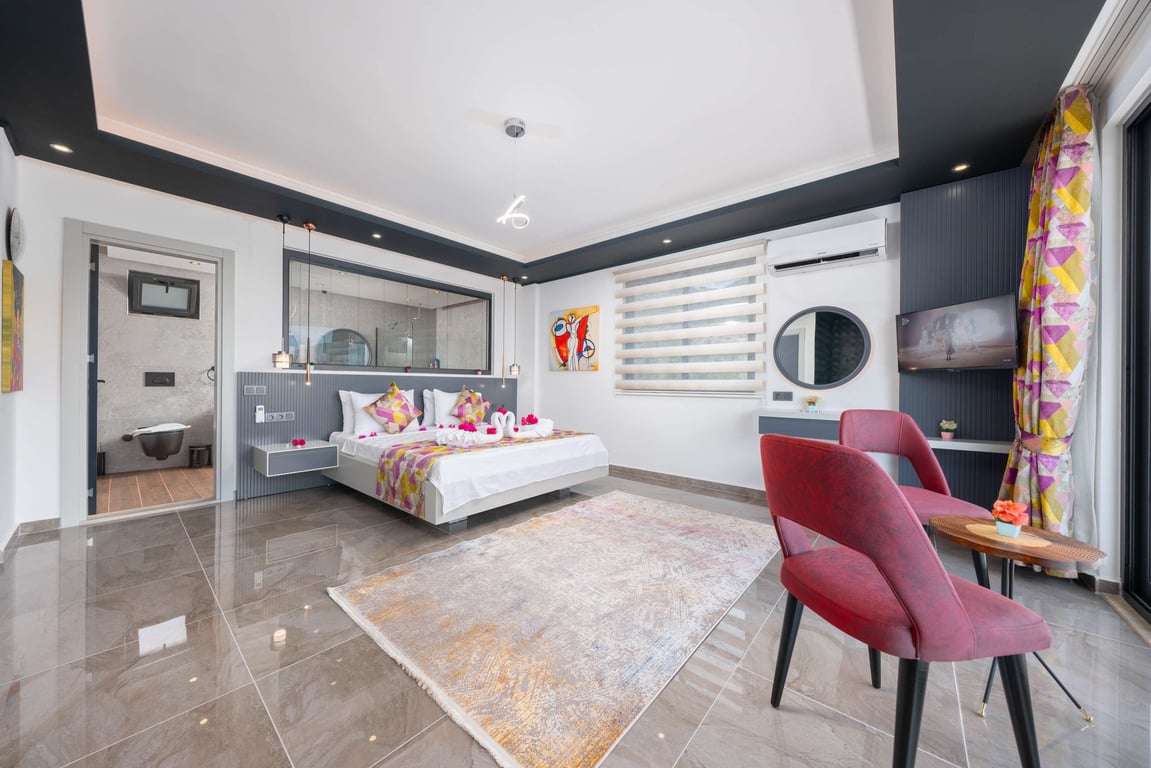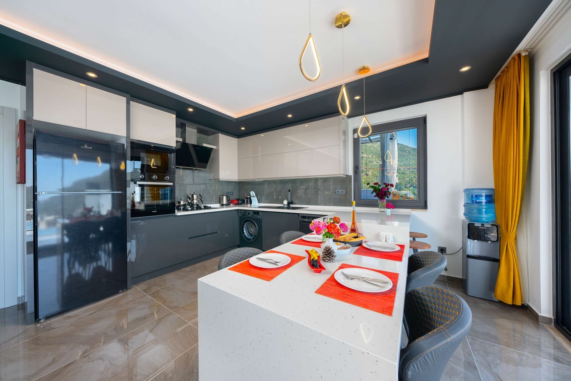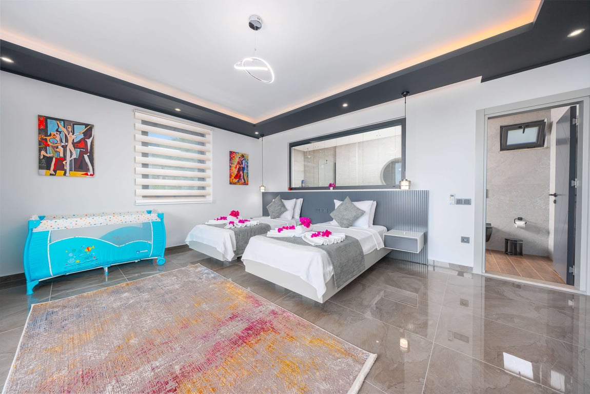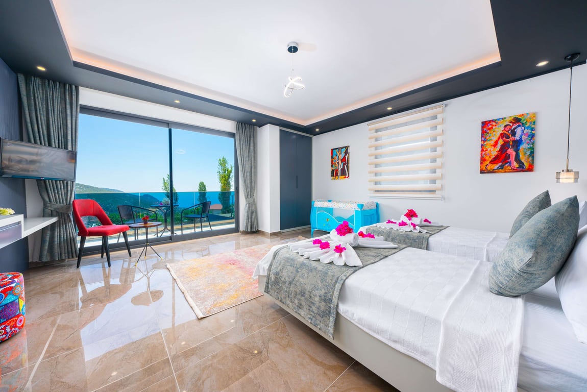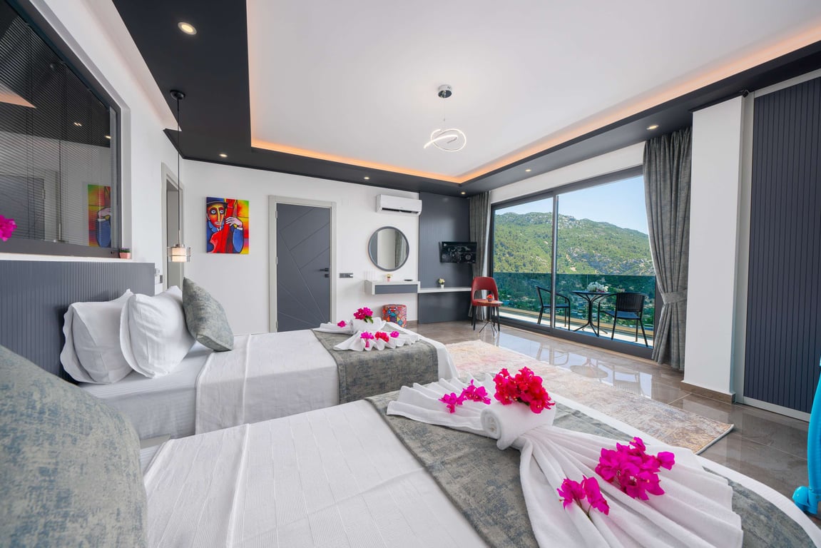 Villa Güney, Kalkan İslamlar bölgesinde konumlanmakta olan yeşilliklerle kaplı doğa manzarasına hakim kiralık villalarımız arasında yer almaktadır. Lüks ve modern bir şekilde dizayn edilen villamızda 2 adet yatak odası bulunmakta olup, 4 kişiye konaklama imkanı sağlamaktadır. Yatak odalarından bir tanesinin içerisinde tüm yılın vermiş olduğu yorgunluğu giderebileceğiniz jakuzi yer almaktadır. Havuz ve havuz terası korunaklı hale getirilen yazlık villamızı muhafazakar aileler gönül rahatlığı ile tercih edebilirler. Hayallerinizin de ötesinde keyif dolu bir yazlık villada tatil için Villa Güney’ i tercih edebilirsiniz.