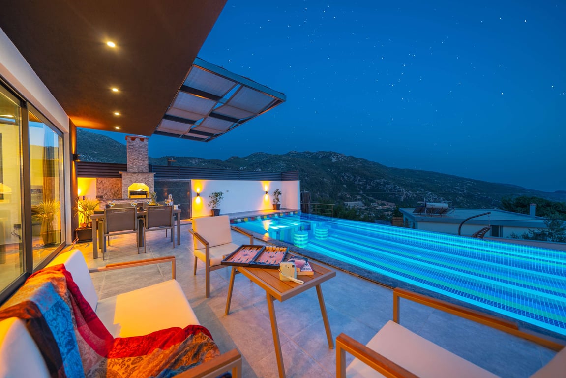 Havuzlu Kiralık Villa Doğa İle İç İçe Muhafazakar Kiralık Villa Kaş Kiralık Villa Antalya Kiralık Villa Jakuzili Balayı Kiralık Villa Muhafazakar Villa Balayı Villası Dağ Manzaralı Sığ ve Çocuk Havuzlu Villa Kalkan Kiralık Villa