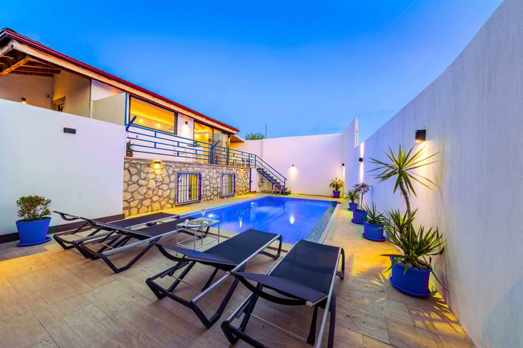 Villa Kutay, Kalkan Patara bölgesinde konumlanmakta olan muhteşem doğa manzarasına hakim kiralık villalarımız arasında yer almaktadır. Konforlu bir şekilde dizayn edilen villamızda 2 adet yatak odası bulunmakta olup, 4 kişiye konaklama imkanı sağlamaktadır. Yatak odalarından bir tanesinin içerisinde tüm yılın vermiş olduğu yorgunluğu giderebileceğiniz jakuzi yer almaktadır. Aynı zamanda villamızda hamam, sauna ve kış aylarında tatil planı yapmak isteyen misafirlerimiz için kapalı ısıtma havuzu yer almaktadır. Havuz ve havuz terası korunaklı hale getirilen yazlık villamızı muhafazakar aileler gönül rahatlığı ile tercih edebilirler. Hayallerinizin de ötesinde keyif dolu bir yazlık villada tatil için Villa Kutay’ ı tercih edebilirsiniz.