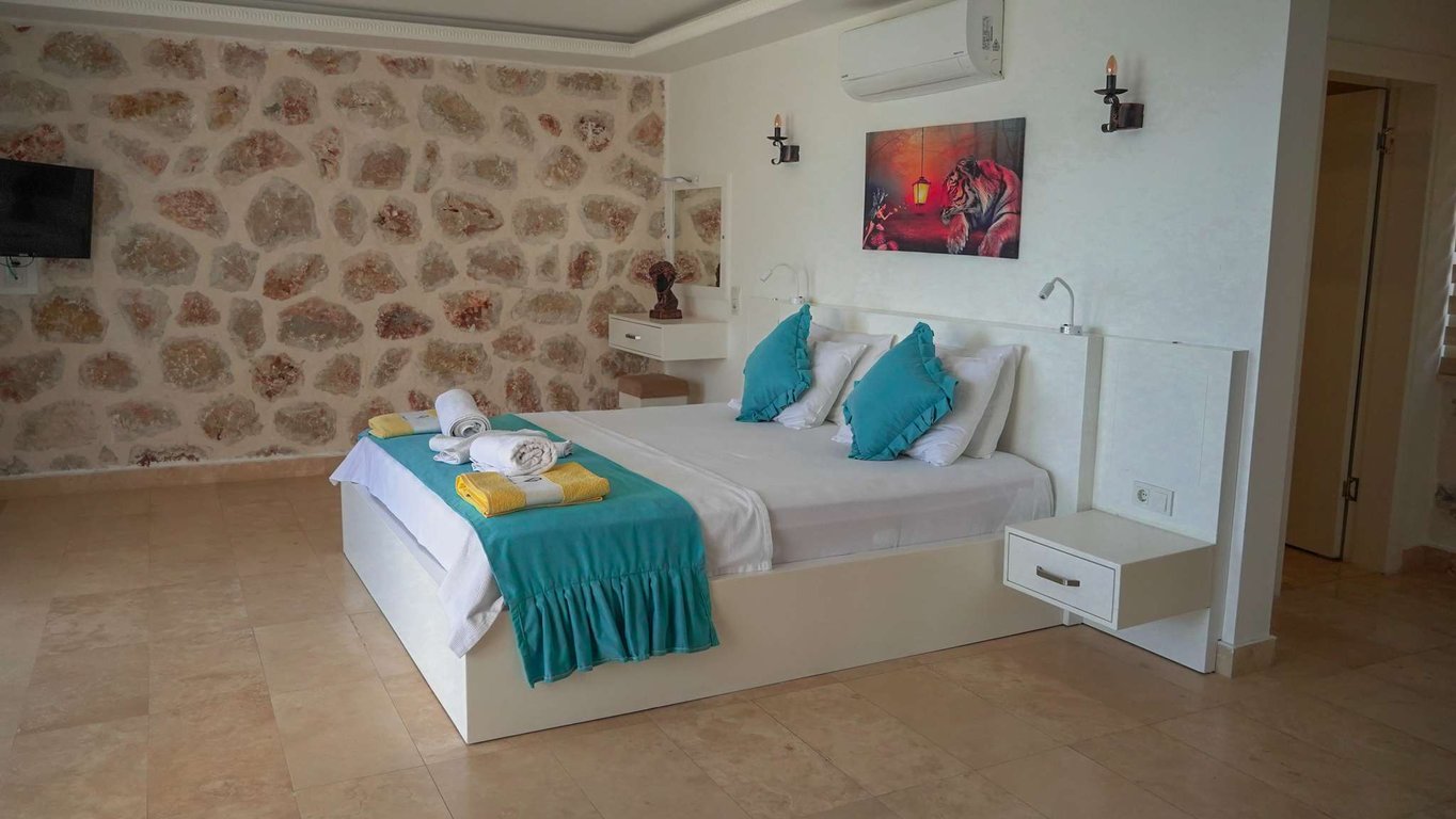Villa Narin 6, Kalkan İslamlar bölgesinde konumlanmakta olan muhteşem yeşilliklerle kaplı doğa manzarasına hakim kiralık villalarımız arasında yer almaktadır. Lüks ve modern bir şekilde dizayn edilen villamızda 2 adet yatak odası bulunmakta olup, 4 kişiye konaklama imkanı sağlamaktadır. Balayı çiftleri ve çekirdek aileler için uygundur. Aynı zamanda kış aylarında tatil planı yapmak isteyen misafirlerimiz için kapalı ısıtma havuzu yer almaktadır. Havuz ve havuz terası korunaklı hale getirilen yazlık villamızı muhafazakar aileler gönül rahatlığı ile tercih edebilirler. Hayallerinizin de ötesinde keyif dolu bir yazlık villada tatil için Villa Narin 6’ yı tercih edebilirsiniz.