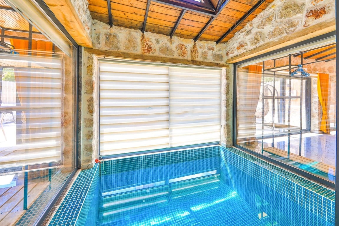 Villa North Shield, Kalkan Bezirgan bölgesinde konumlanmakta olan muhteşem yeşilliklerle kaplı doğa manzarasına hakim kiralık villalarımız arasında yer almaktadır. Konforlu bir şekilde dizayn edilen villamızda 2 adet yatak odası bulunmakta olup, 4 kişiye konaklama imkanı sağlamaktadır. Yatak odalarından bir tanesinin içerisinde tüm yılın vermiş olduğu yorgunluğu giderebileceğiniz jakuzi yer almaktadır. Aynı zamanda kış aylarında tatil planı yapmak isteyen misafirlerimiz için kapalı ısıtma havuzu yer almaktadır. Aynı zamanda villamızın dış havuzunda da ısıtma sistemi yer almaktadır. Havuz ve havuz terası korunaklı hale getirilen yazlık villamızı muhafazakar aileler gönül rahatlığı ile tercih edebilirler. Hayallerinizin de ötesinde keyif dolu bir yazlık villada tatil için Villa North Shield’ i tercih edebilirsiniz.