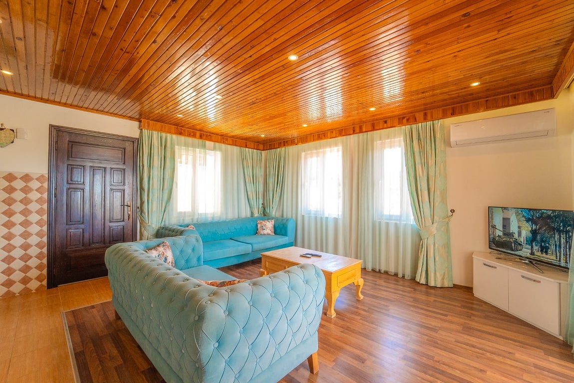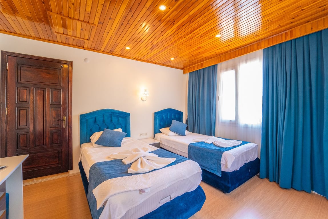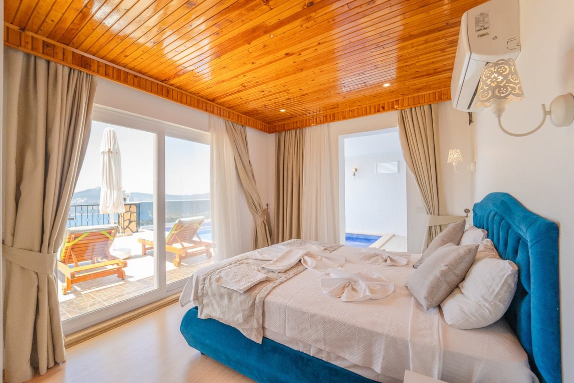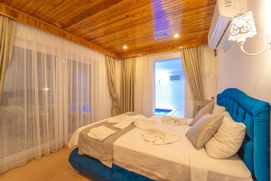 Villa Sinem, Kalkan Kördere bölgesinde konumlanmakta olan muhteşem deniz ve yeşilliklerle kaplı doğa manzarasına hakim kiralık villalarımız arasında yer almaktadır. Konforlu bir şekilde dizayn edilen villamızda 2 adet yatak odası bulunmakta olup, 4 kişiye konaklama imkanı sağlamaktadır. Yatak odalarından bir tanesinin içerisinde kış aylarında tatil planı yapmak isteyen misafirlerimiz için kapalı ısıtma havuzu yer almaktadır. Havuz ve havuz terası korunaklı hale getirilen yazlık villamızı muhafazakar aileler gönül rahatlığı ile tercih edebilirler. Hayallerinizin de ötesinde keyif dolu bir yazlık villada tatil için Villa Sinem’ i tercih edebilirsiniz.