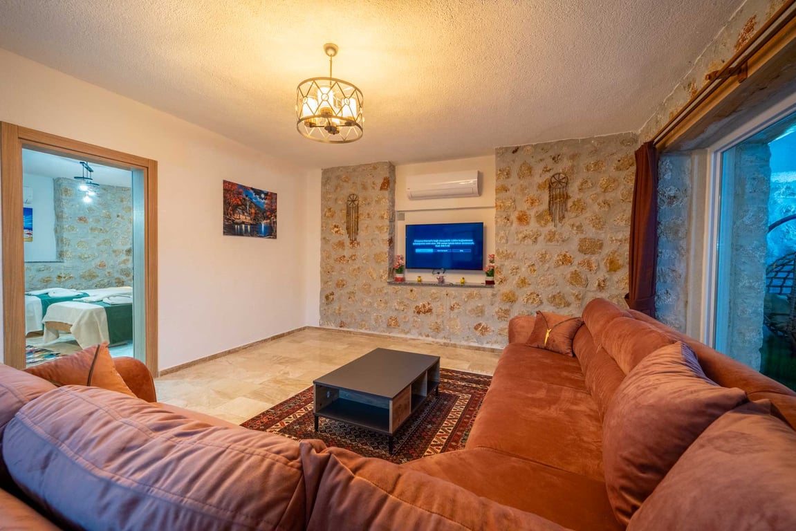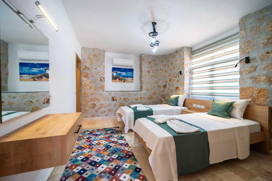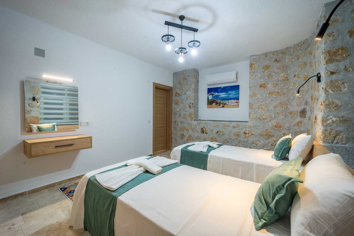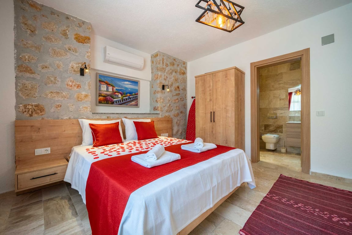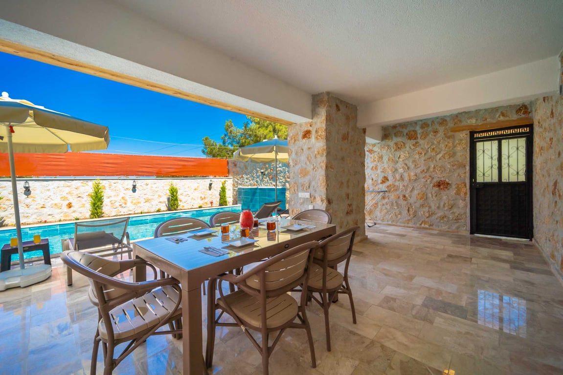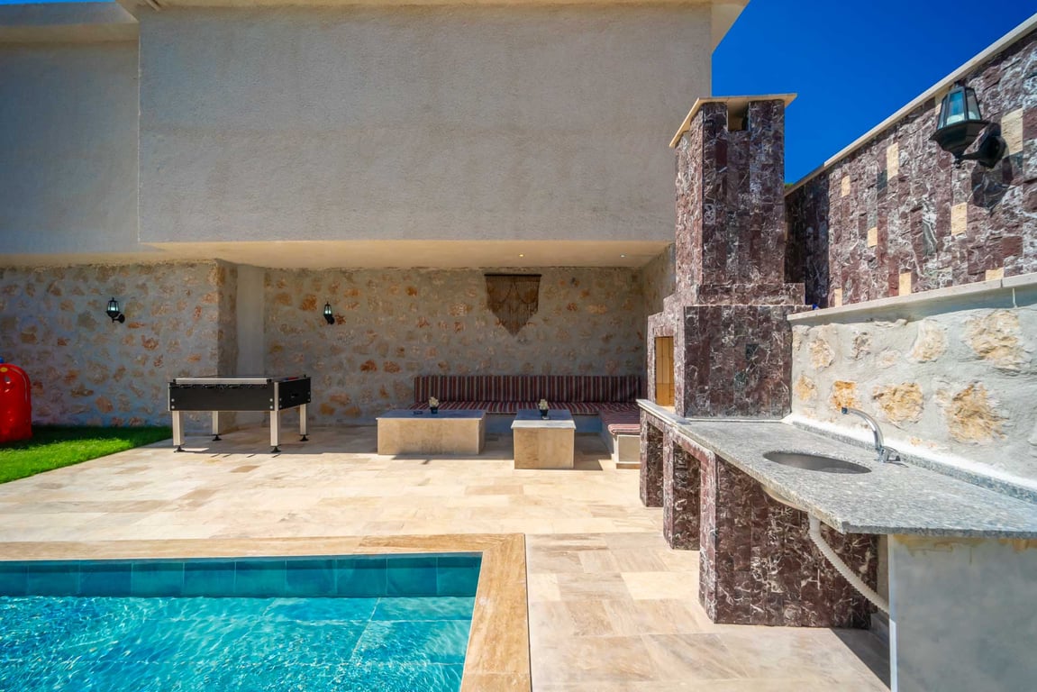 Villa Zeyno 6, Kalkan Akbel bölgesinde konumlanmakta olan yeşilliklerle kaplı doğa manzarasına hakim kiralık villalarımız arasında yer almaktadır. Konforlu bir şekilde dizayn edilen villamızda 2 adet yatak odası bulunmakta olup, 4 kişiye konaklama imkanı sağlamaktadır. Yatak odalarından bir tanesinin içerisinde tüm yılın vermiş olduğu yorgunluğu giderebileceğiniz jakuzi yer almaktadır. Villamız balayı çiftleri ve çekirdek aileler için uygundur. Ayrıca villamızda langırt bulunmaktadır. Havuz ve havuz terası korunaklı hale getirilen yazlık villamızı muhafazakar aileler gönül rahatlığı ile tercih edebilirler. Hayallerinizin de ötesinde keyif dolu bir yazlık villada tatil için Villa Zeyno 6’ yı tercih edebilirsiniz.
