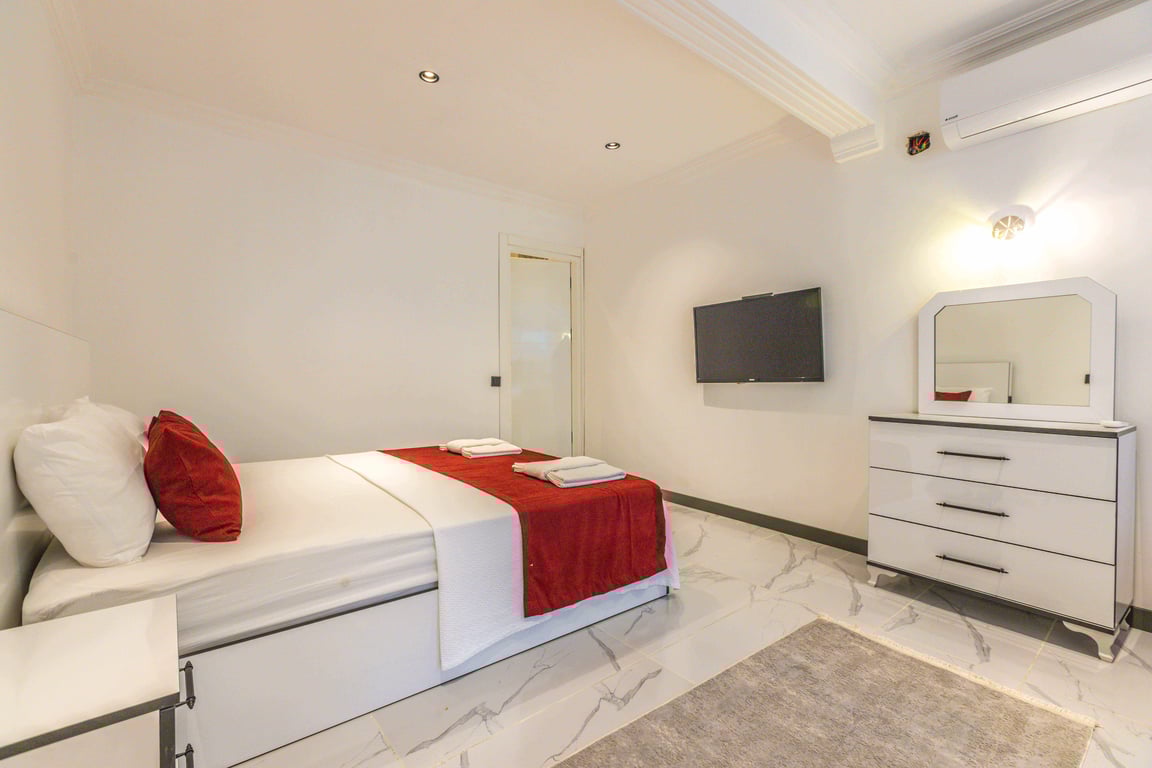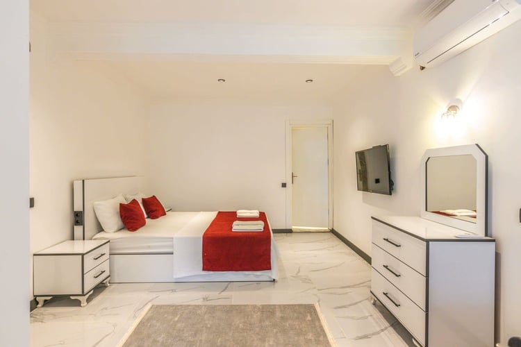 Villa Zülfiye, Kalkan Ulugöl bölgesinde konumlanmakta olan yeşilliklerle kaplı doğa manzarasına hakim kiralık villalarımız arasında yer almaktadır. Konforlu bir şekilde dizayn edilen villamızda 4 adet yatak odası bulunmakta olup, 8 kişiye konaklama imkanı sağlamaktadır. Yatak odalarından iki tanesinin içerisinde tüm yılın vermiş olduğu yorgunluğu giderebileceğiniz jakuzi yer almaktadır. Aynı zamanda villamızda sauna mevcuttur. Villamız geniş aileler ve kalabalık arkadaş grupları için uygundur. Hayallerinizin de ötesinde keyif dolu bir yazlık villada tatil için Villa Zülfiye’ yi tercih edebilirsiniz.